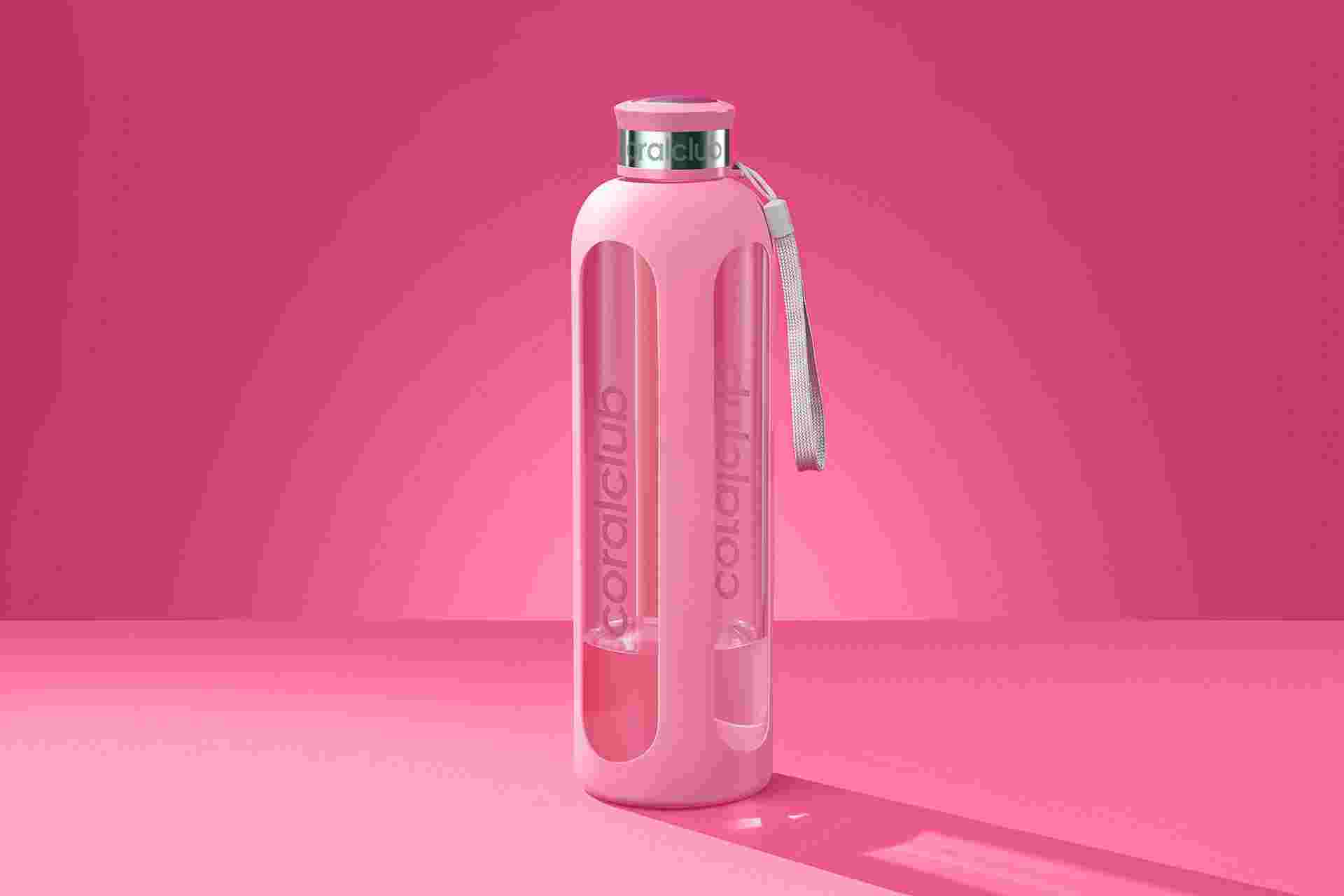 Skleněná láhev "ClearWater", růžová, 1000 ml